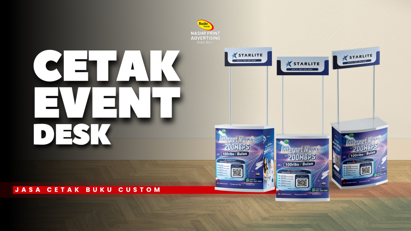 Dalam dunia bisnis yang semakin kompetitif, tampilan visual saat mengikuti event menjadi faktor penting untuk menarik perhatian calon pelanggan. Salah satu perlengkapan yang wajib dimiliki adalah event desk portable atau meja booth promosi yang praktis, profesional, dan mudah dibawa ke berbagai lokasi.Bagi pelaku UMKM hingga perusahaan, penggunaan meja booth custom tidak hanya berfungsi sebagai tempat display produk, tetapi juga sebagai media branding yang efektif.