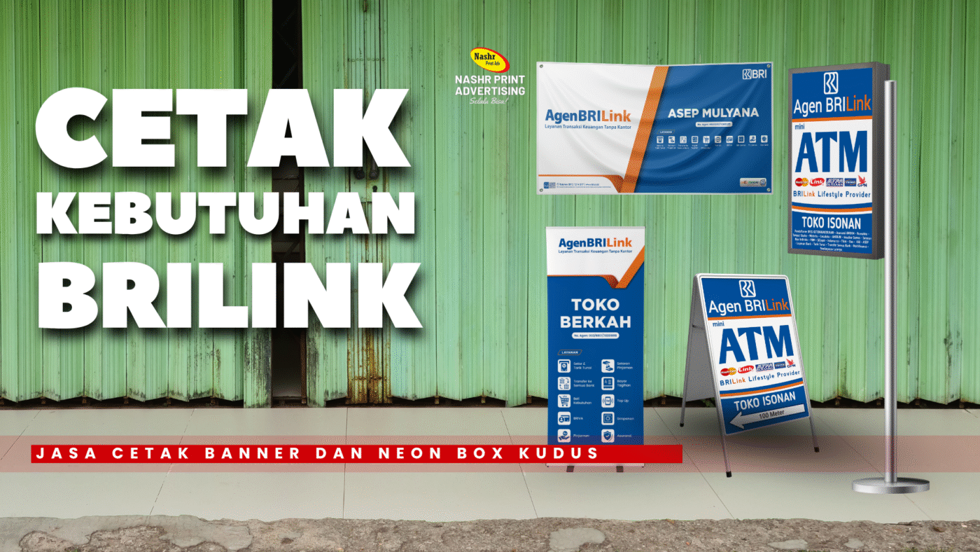Ingin warung atau agen BRILink di Kudus terlihat lebih menarik dan mudah dikenali pelanggan? Kini Anda bisa cetak banner BRILink, neon box, roll up banner, hingga papan arah BRILink dengan hasil profesional di Nashr Print Advertising Kudus.