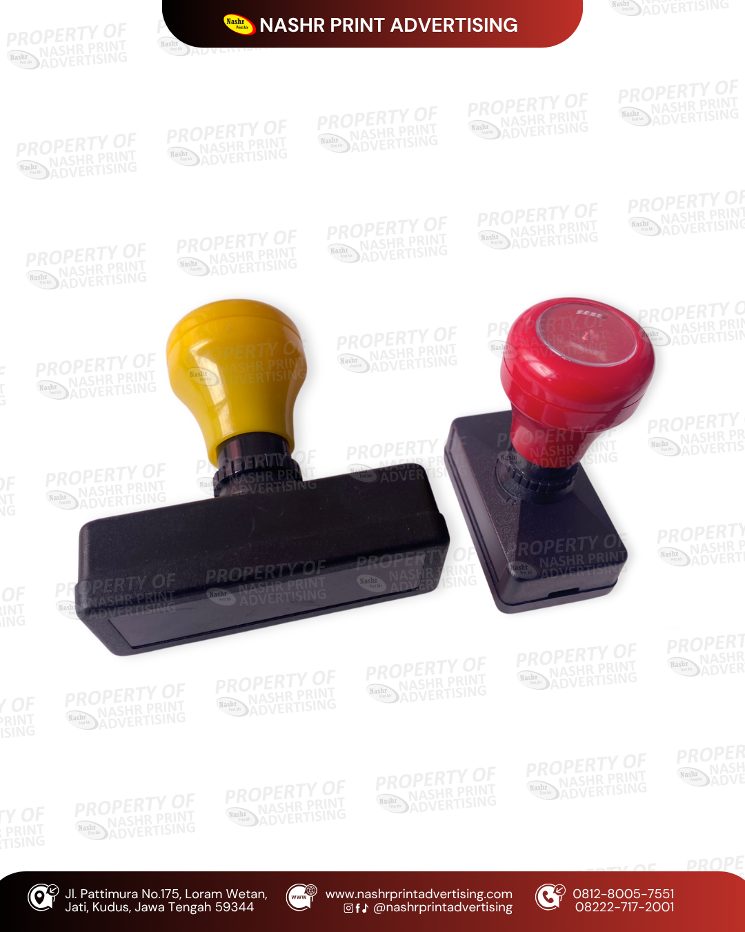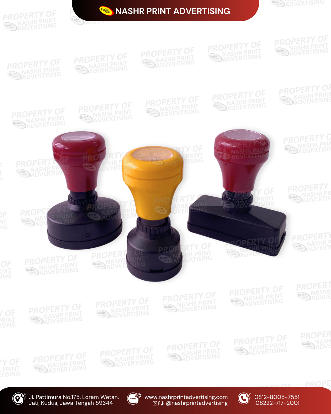 Buat stempel flash custom untuk kebutuhan usaha, kantor, dan personal di Kudus bersama Nashr Print Advertising.